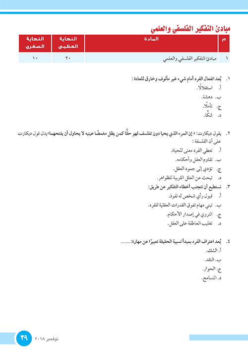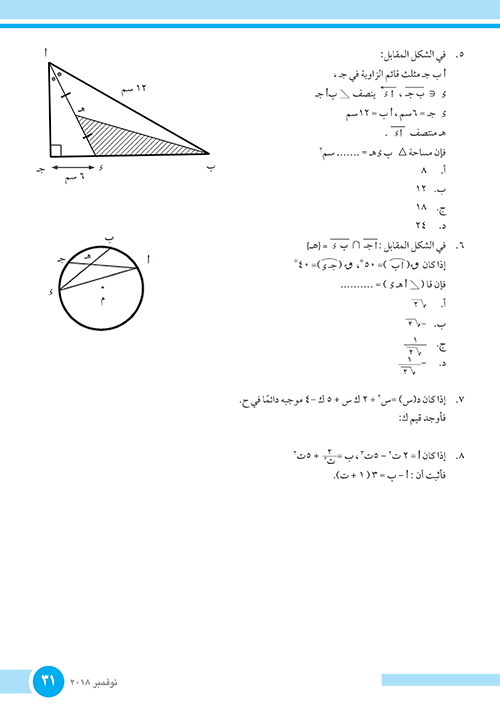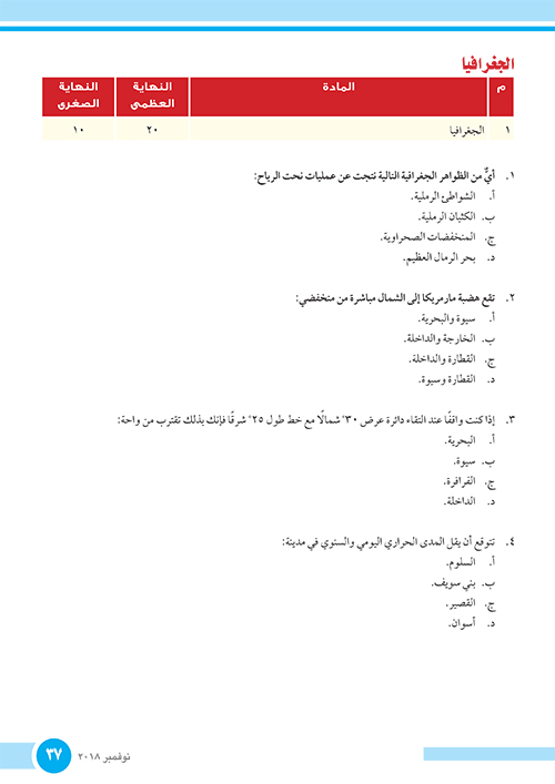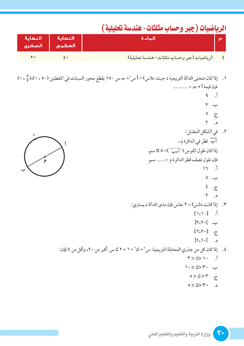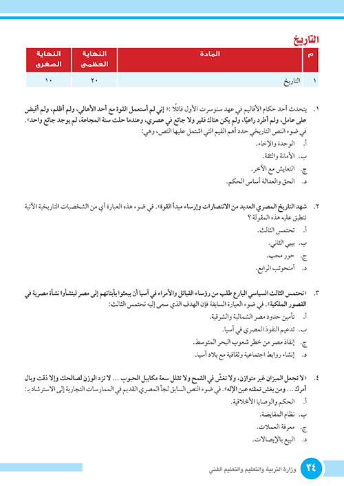 الامتحانات الاسترشادية الصف الأول الثانوي