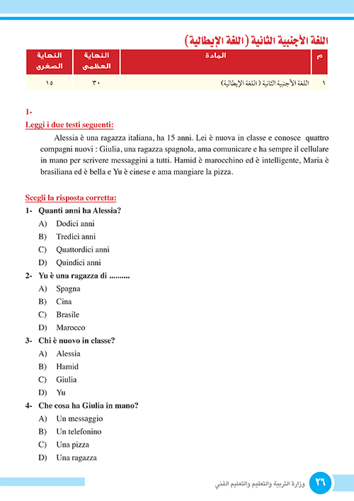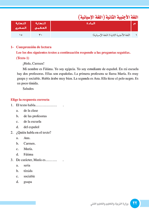 الامتحانات الاسترشادية الصف الأول الثانوي